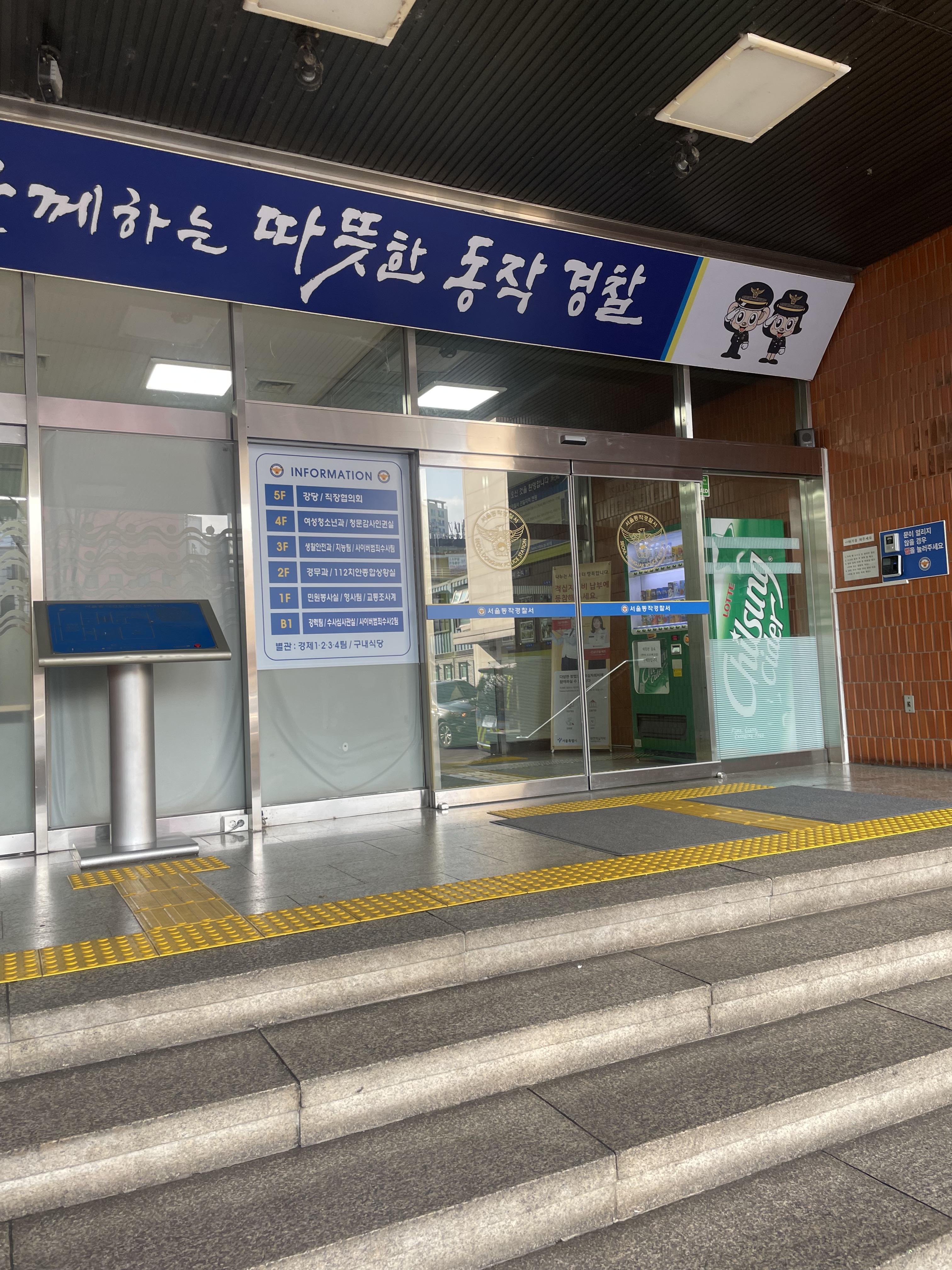 동작경찰서 입구 안내아저씨께서 무슨일로 왔는지 친절히 물어보시며