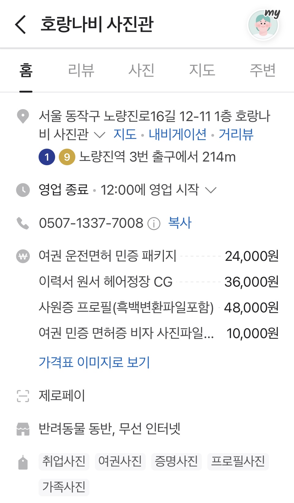 호랑나비사진관에서 사진 찍으시고 동작경찰서 가시면 좋을 것 같아요.