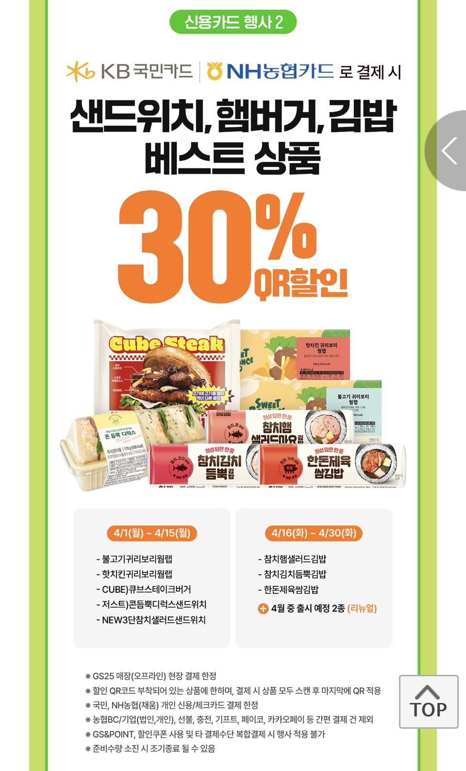4월 GS25에셔는 결제 수단별 혜택이 다양합니다.